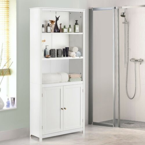 Be the first to review “White Bathroom Linen Tower Towel Storage Cabinet with 3 Open Shelves” Cancel reply