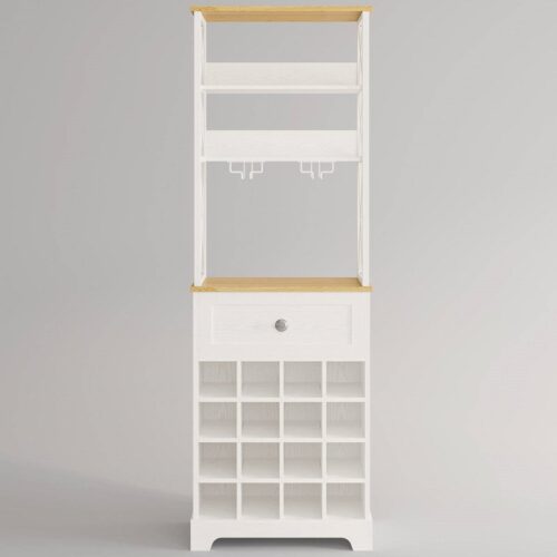 White/Natural Wine Bottle & Glass Rack Cabinet Bar Storage